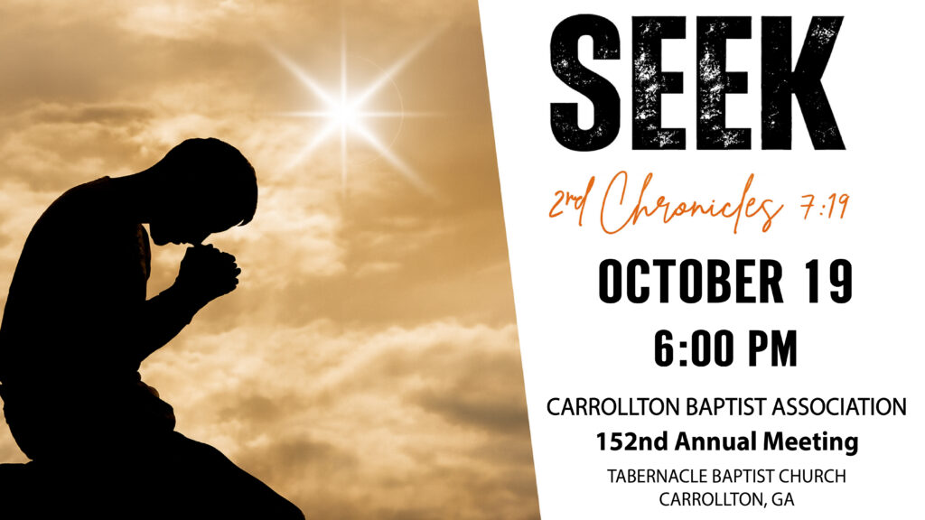 Tabernacle will host the 152nd annual meeting of the Carrollton Baptist Association on Sunday, October 19, at 6:00 PM in the Worship Center. The guest speaker is Dr. Marcus Merritt, Assistant Professor of Pastoral Ministry, Doctor of Ministry Program Coordinator, and Director of Church Relations at Luther Rice Seminary. The Anthem Edition Quartet and the Tabernacle Choir will present special music.