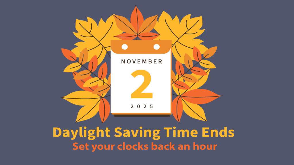 Don’t forget to set your clocks back one hour on Saturday, November 2! Enjoy that extra hour of sleep, and we’ll see you bright and early for Sunday worship.