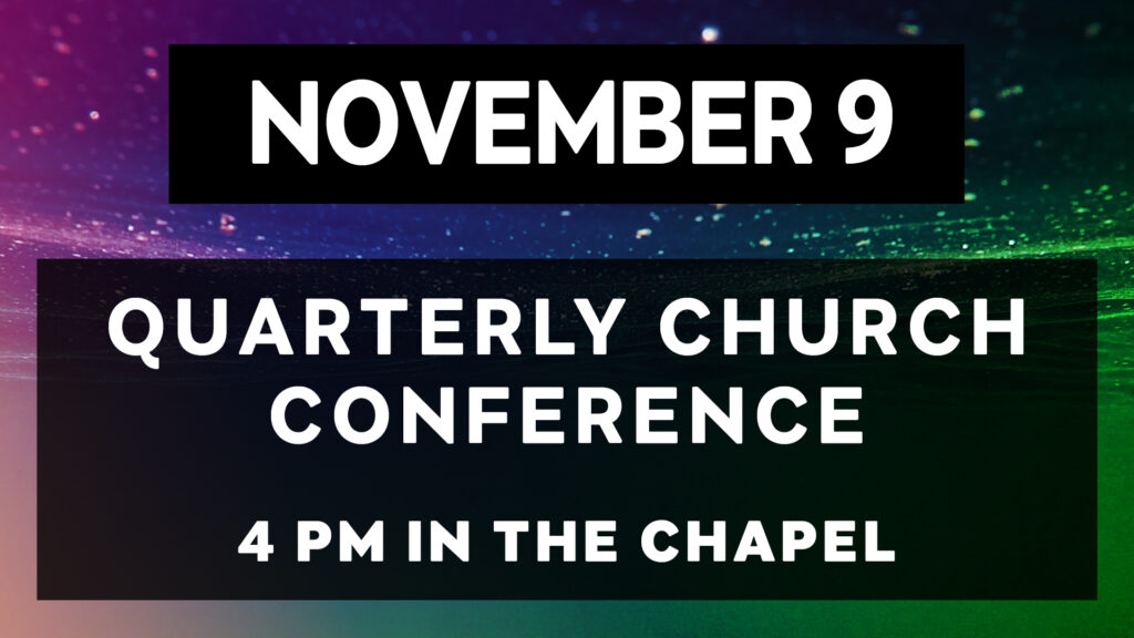 Our next Quarterly Church Conference is on Sunday, November 9, at 4 PM in the Chapel.